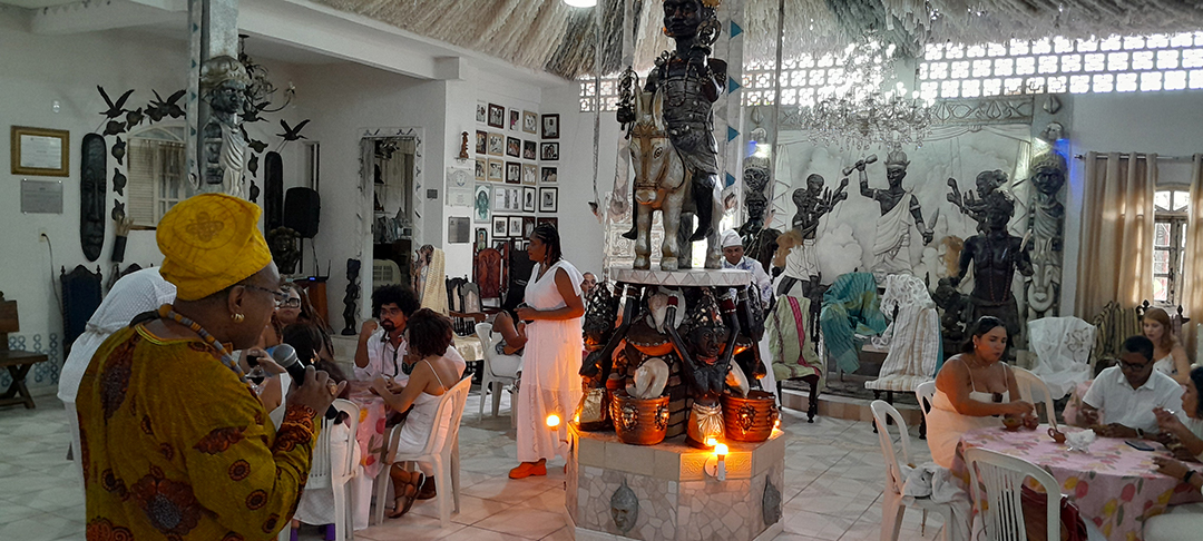 Compreendendo a comida como história e a sua importância como demarcador de identidades negras africanas na diáspora, a Casa do Rei e Senhor das Alturas, no final da visita guiada que disponibiliza à colégios de ensino fundamental, instituições de nível superior e grupos que fazem parte da trade turística, seja do gastronômico ou religioso, serve aos participantes um menu degustativo comentado composto por comidas africanas tais como o efó, o akará, o olelé, o assarô, o ekó, o aluá, dentre outras. Esta atividade tem a função de demonstrar que “existe uma cozinha africana no Brasil.” Trata-se de comidas e bebidas, preservadas em algumas comunidades terreiros tradicionais da cidade de Salvador que tem a cozinha votiva dos seus orixás como um dos seus maiores patrimônios, e que por isso, devem ser preservadas. Como já mencionamos, alguns ingredientes utilizados na preparação destas comidas são adquiridos nas feiras, mas há também uma pequena parte colhida no entorno da comunidade como algumas folhas utilizadas no preparo do efó.